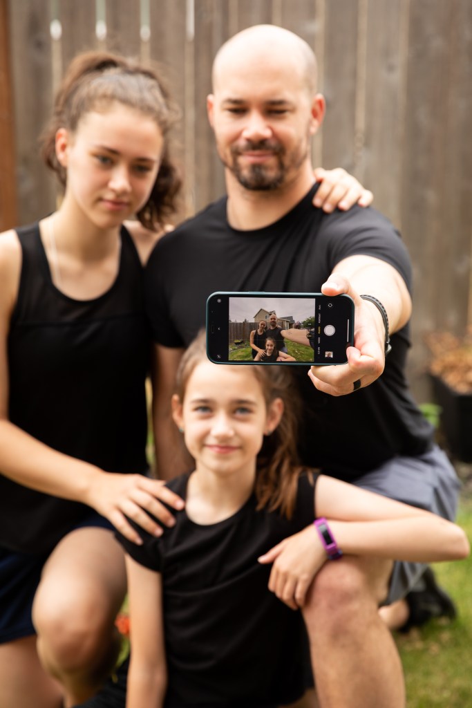 Every day for the month of June, I took a photo of my husband with one or both of our girls. I know I’m a little biased, but the results are fantastic! All of his Dad personalities are captured here: strong guy, corny joke teller, snuggler, working Dad, life lesson teacher, athlete, fun guy, sweet guy, tough guy…the list goes on and on.